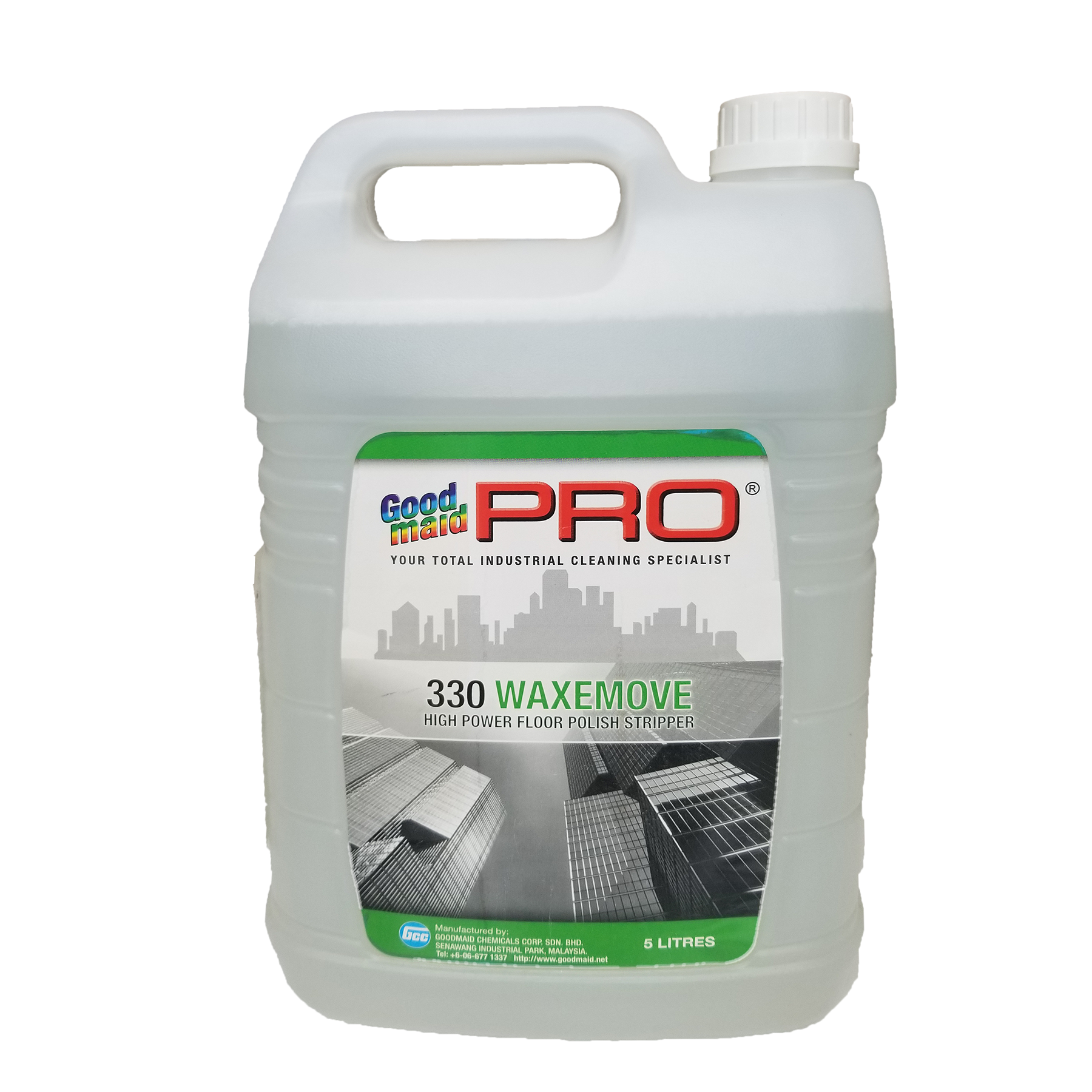 Hóa chất đánh tróc Goodmaid PRO Waxemove 330 5L là sản phẩm thuộc thương hiệu Goodmaid PRO – Malaysia. Đây là loại hóa chất đánh tróc chuyên dùng để bóc lớp bảo vệ mặt sàn một cách nhanh chóng và hiệu quả.